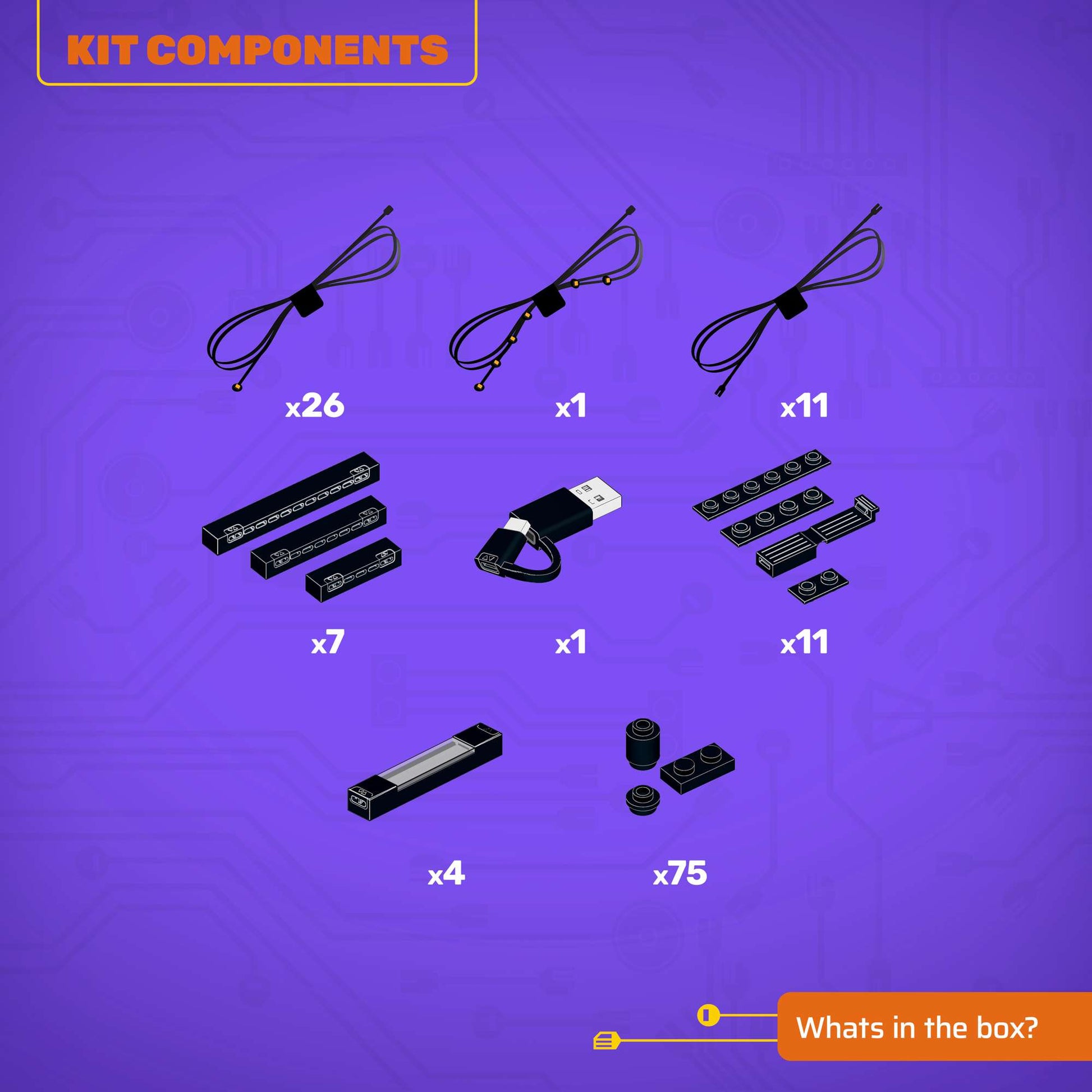 - All component casing and housing has been designed to connect seamlessly onto the LEGO stud system, with LEGO dimensional parts.
