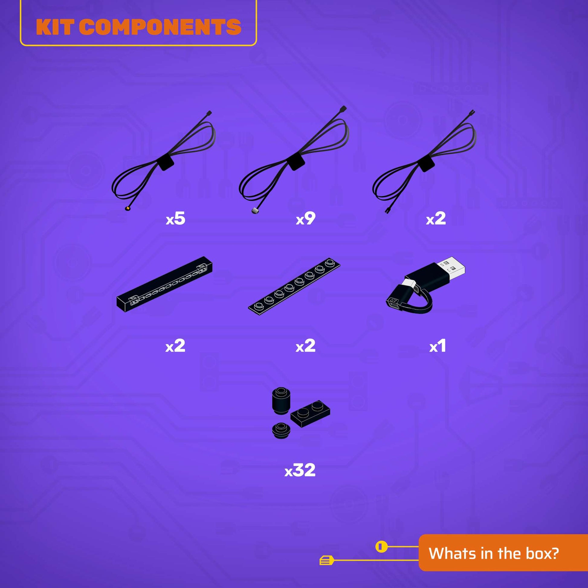 - All component casing and housing has been designed to connect seamlessly onto the LEGO stud system, with LEGO dimensional parts.